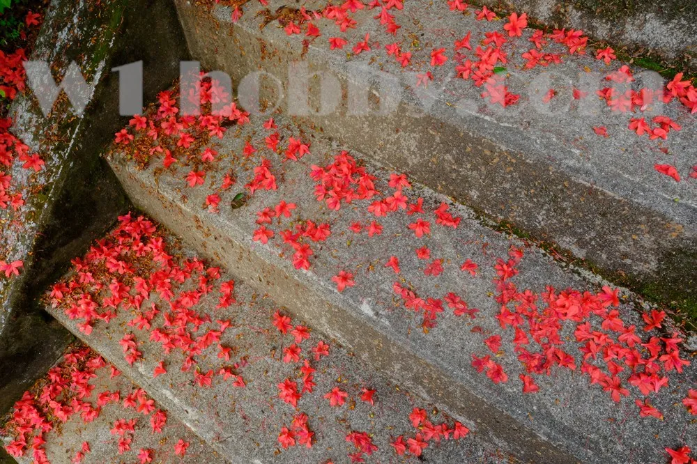 高齢者なので、石段の途中で何度も休む。その時の足元。